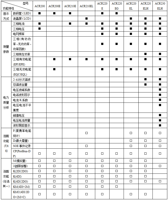 注:“■”為標配功能,“□”為選配功能。