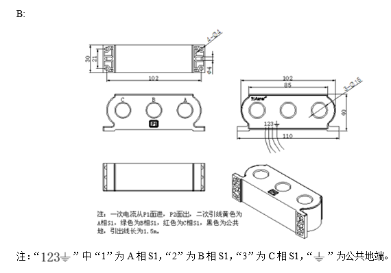 組合式CT三相一體,用于小空間配電柜。訂貨范例: