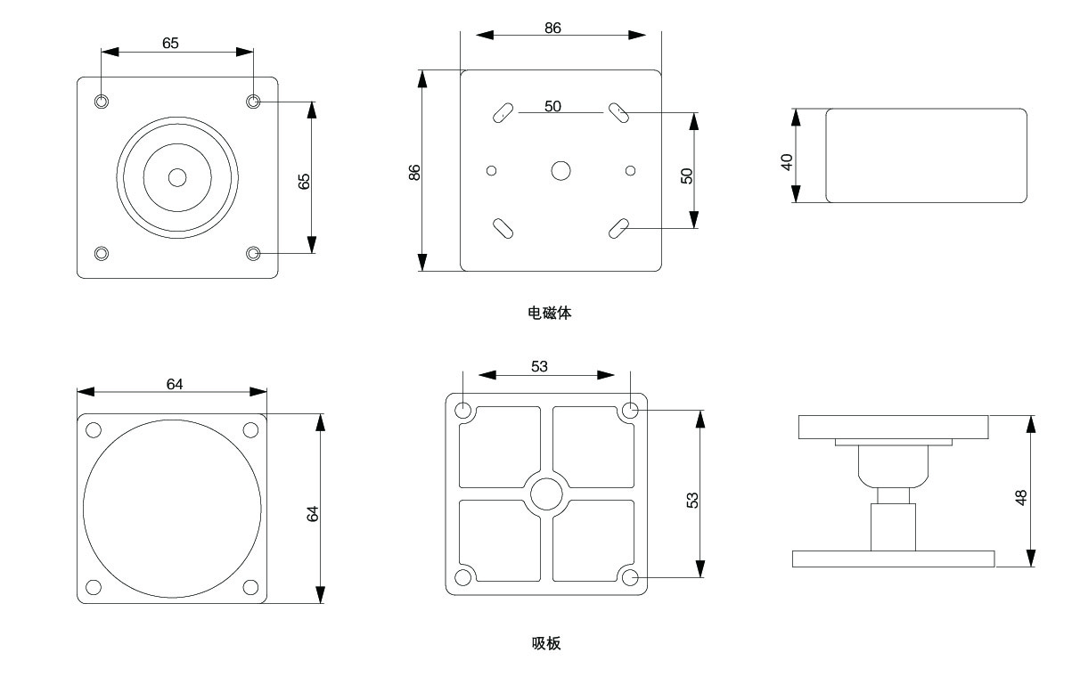 安裝方式 電磁體安裝在墻面上,吸板安裝于門上