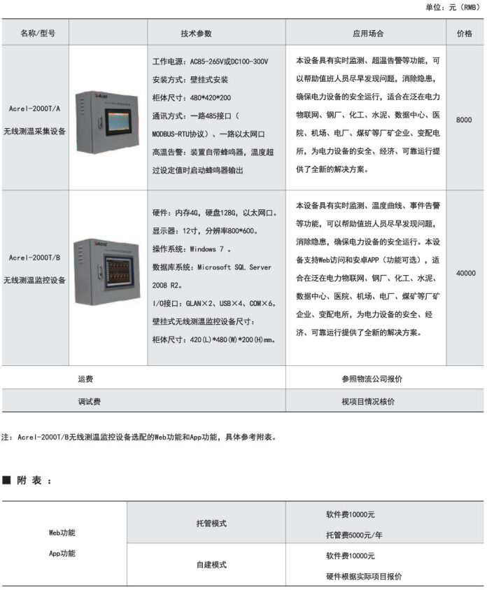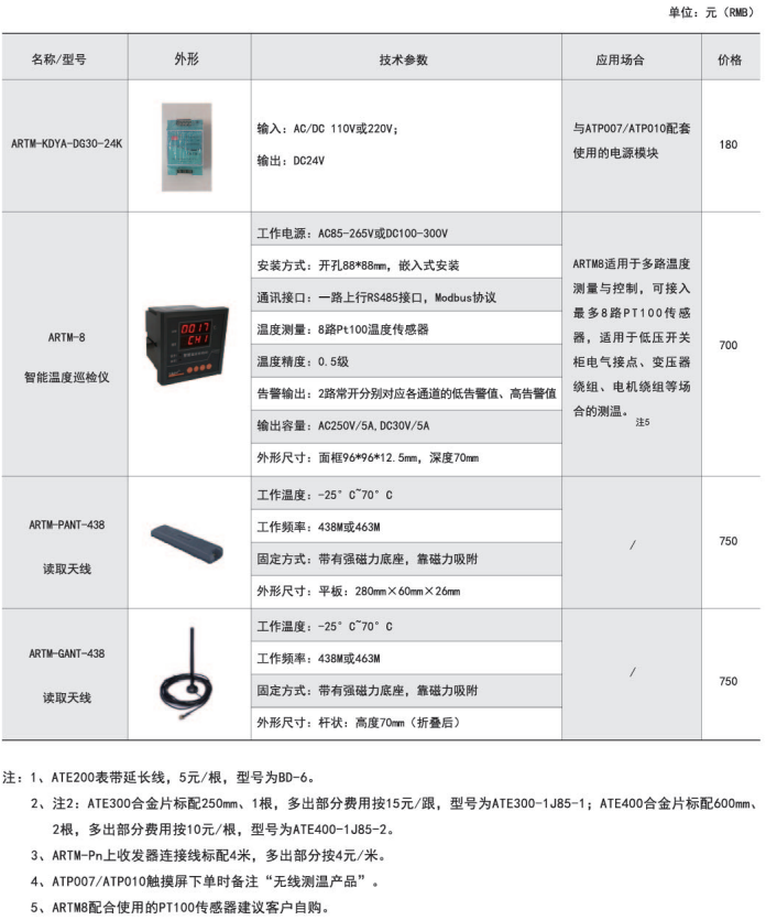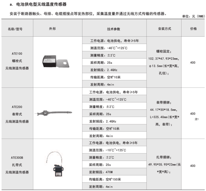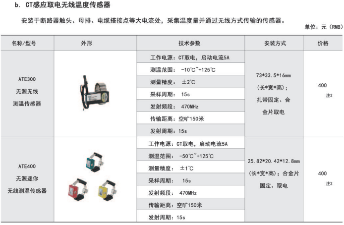 綜上所述,確定型號為:無線測溫裝置:ARTM-P9-300,1臺;無線測溫傳感器:ATE300,9個