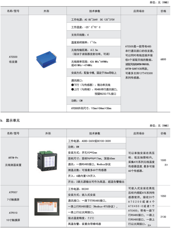 綜上所述,確定型號為:無線測溫集中觸摸屏:AARTM-7062HT-4(HI),1臺;無線測溫傳感器:ATE200,90個;無線測溫收發器:ATC200,10個