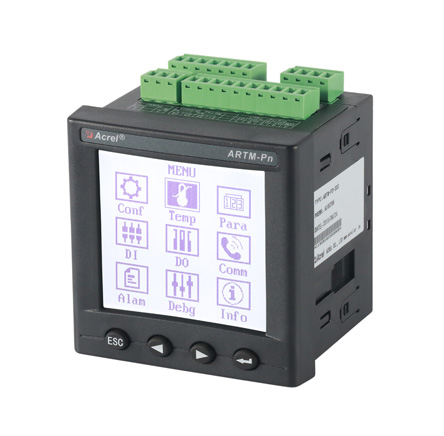 ARTM-Pn無線測溫裝置:ARTM-Pn無線測溫裝置可以單獨安裝在高壓柜、低壓抽屜柜內,每臺裝置可以接收18個傳感器的數據,傳感器型號可選配ATE100、ATE200、ATE300。裝置帶有一路485接口,可將采集到的溫度數據上傳到監控中心。