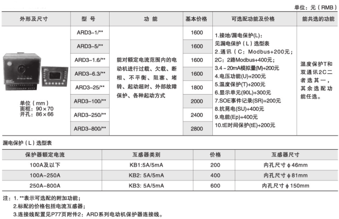 ARD3T輔助電源 | AC/DC 110 / 220V或AC 380V,功耗≤15VA | ||