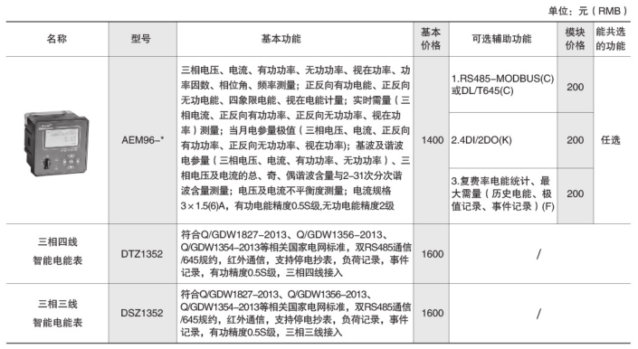 AEM96嵌入式安裝電能計(jì)量表
